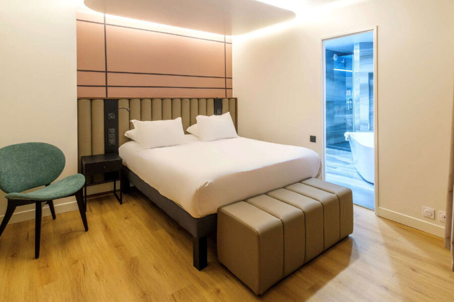 Nous avons rejoint le projet de rénovation des chambres après l’élaboration du plan conceptuel, et nous avons été chargés de développer ce plan. Suite a l’adaptation de ce plan pour chaque typologie de chambre, nous avons élaboré les plans détaillés de l’ameublement. Après le travail de conception, nous avons produit les meubles et organiser le montage sur place.